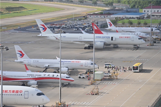 8月4日,東航已經(jīng)接收的2架C919國(guó)產(chǎn)大飛機(jī)首次開(kāi)啟“雙機(jī)商業(yè)運(yùn)營(yíng)”,同日?qǐng)?zhí)行“上海虹橋——成都天府”航線,繼續(xù)向著“飛出安全、飛出志氣、飛出品牌、飛出效益”目標(biāo)不斷邁進(jìn)。