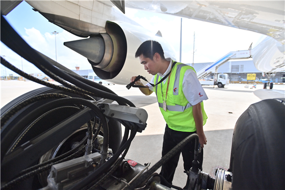 面對(duì)艱苦的工作,潘陳卻沒有什么怨言,他認(rèn)為這些是自己職業(yè)生涯歷練成長(zhǎng)的一部分,“航班旺季每一個(gè)機(jī)務(wù)都很忙,大家都有許多工作要完成。作為一名新人,我的技術(shù)水平暫時(shí)還不能完成那些高難度的維修工作,所以這些體力活我就多承擔(dān)一些,雖然辛苦,但是只要肯干就一定會(huì)有收獲?!迸岁愡@樣說道。