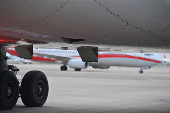 為了確保飛機(jī)能夠準(zhǔn)點(diǎn)準(zhǔn)時(shí)出港,裘磊提早來到了工作崗位。在首先調(diào)取查看飛機(jī)單機(jī)技術(shù)狀況后,裘磊圍繞飛機(jī)作繞機(jī)檢查,他用手電筒照明并仔細(xì)查看機(jī)翼、機(jī)身、起落架、尾翼、發(fā)動(dòng)機(jī)等關(guān)鍵部位的表面及結(jié)構(gòu)情況,確認(rèn)各類電子設(shè)備、儀表儀器沒有異常。在他身旁不遠(yuǎn)處,另一位維修機(jī)務(wù)正在檢查飛機(jī)機(jī)輪的胎壓情況?!皫讉€(gè)機(jī)輪的胎壓都o(jì)k嗎?”機(jī)坪的噪音很大,裘磊不得不扯開嗓子大聲詢問。在得到肯定回答后,裘磊與當(dāng)天的航班機(jī)長(zhǎng)確認(rèn)了飛機(jī)處于適航狀態(tài),并在放行工單和技術(shù)記錄本上簽字放行。隨著牽引車緩緩將飛機(jī)推出,裘磊揮手向航班道別,MU9979航班在7:25分準(zhǔn)時(shí)出港飛往青島膠東國際機(jī)場(chǎng)。