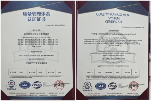 近日,經(jīng)專業(yè)認(rèn)證機(jī)構(gòu)中泰智聯(lián)(北京)認(rèn)證中心有限公司一系列嚴(yán)格的審查考核,北京隨信云鏈科技有限公司 ( 下稱:隨信云鏈 ) 憑借 優(yōu)秀的質(zhì)量管理體系在應(yīng)用軟件開發(fā)及運(yùn)維服務(wù)領(lǐng)域,成功獲得ISO9001: ?2015國(guó)際質(zhì)量管理體系認(rèn)證。