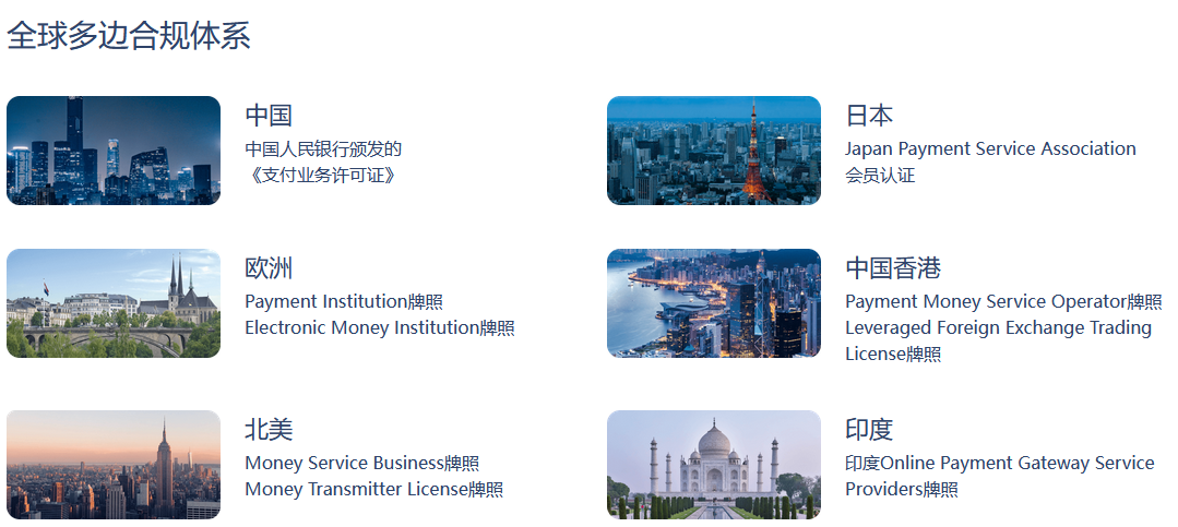 作為資金流服務(wù)的關(guān)鍵環(huán)節(jié),支付在多數(shù)國家都是重點(diǎn)監(jiān)管的項(xiàng)目。在跨境匯兌、資金分發(fā)等服務(wù)中,支付牌照作為展業(yè)的基礎(chǔ),是企業(yè)合規(guī)能力的直接體現(xiàn)。多年來,PingPong福貿(mào)始終堅(jiān)持“牌照先行,資質(zhì)先行”理念,致力于在全球范圍內(nèi)多個(gè)主要經(jīng)濟(jì)體國家及地區(qū)爭取獲得合規(guī)牌照,以打造堅(jiān)實(shí)穩(wěn)固的全球多邊合規(guī)體系。目前已擁有中國、歐洲、美國、日本、印度、澳大利亞等主要經(jīng)濟(jì)體的數(shù)十張支付類牌照及認(rèn)證資質(zhì),是國內(nèi)少有的雙邊持牌支付企業(yè)。