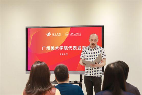 儀式上,廣州美術學院教學實驗中心肖勇主任向漢王友基一行表示熱烈歡迎,并介紹學校發(fā)展情況。他指出,經(jīng)過廣州美術學院校友辦、影視后期基地與漢王友基的充分溝通,雙方發(fā)揮優(yōu)勢互補,達成此次校企戰(zhàn)略合作的重要舉措。影視后期教育基地的落成,將聚焦在人才培養(yǎng)、專業(yè)共建、數(shù)字藝術、設計生態(tài)等多方面,開拓校企合作的新領域與新途徑,共同培養(yǎng)高素質(zhì)人才,打造粵港澳大灣區(qū)教育基地。