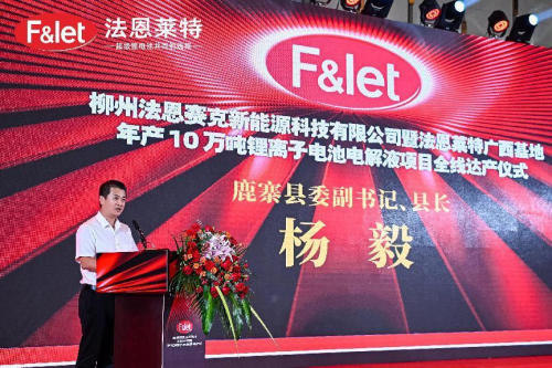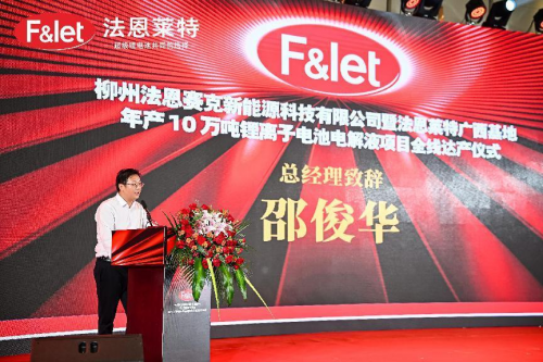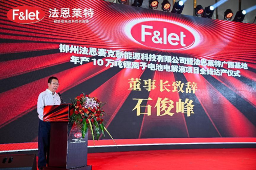 儀式上,法恩萊特邵俊華總經(jīng)理在致辭表示:柳州法恩賽克項(xiàng)目不僅是法恩萊特在華南區(qū)域作出的重大戰(zhàn)略部署,更是法恩萊特面向全球布局的重大舉措。法恩萊特將以此次項(xiàng)目全線達(dá)產(chǎn)為新的起點(diǎn),發(fā)揮公司的技術(shù)、戰(zhàn)略、規(guī)模和品牌等優(yōu)勢(shì),深耕細(xì)作新能源鋰電池行業(yè)材料電解液市場,深化新能源鋰電池行業(yè)更大范圍、更寬領(lǐng)域的務(wù)實(shí)合作,為新能源汽車、儲(chǔ)能系統(tǒng)、消費(fèi)電池客戶提供更具優(yōu)勢(shì)、更高性能的超級(jí)鋰電池電解液解決方案,為新能源行業(yè)的持續(xù)創(chuàng)新貢獻(xiàn)更多力量。