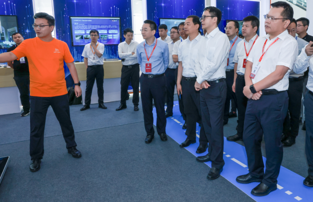 中國施工企業(yè)管理協(xié)會會長王海懷、副會長兼秘書長尚潤濤等一行領(lǐng)導(dǎo),在總裁韓愛生的陪同下一同全程參觀體驗了新中大“12345”沉浸式數(shù)字化轉(zhuǎn)型體驗區(qū)。