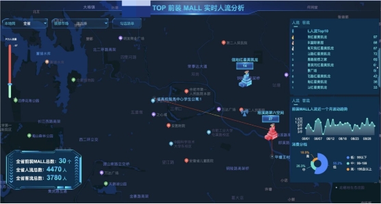 針對家裝MALL市場,家裝MALL為交點,結(jié)合家裝MALL周邊室分站負(fù)載信息,統(tǒng)計其實時人流情況,并利用B域數(shù)據(jù)對用戶畫像進(jìn)行刻畫與分析,進(jìn)行可視化展示,助力家裝市場商機(jī)挖掘,賦能精細(xì)化、個性化精準(zhǔn)營銷。