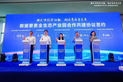 在福田區(qū)發(fā)展和改革局、深圳長城開發(fā)科技股份有限公司、深圳數(shù)據(jù)交易所、粵港澳大灣區(qū)大數(shù)據(jù)研究院、深圳市福田產(chǎn)業(yè)投資服務(wù)有限公司五方協(xié)同下,集資源,搭平臺,顯優(yōu)勢,謀求協(xié)作發(fā)展互惠共贏,攜手推進(jìn)數(shù)據(jù)要素全生態(tài)產(chǎn)業(yè)園建設(shè)。
