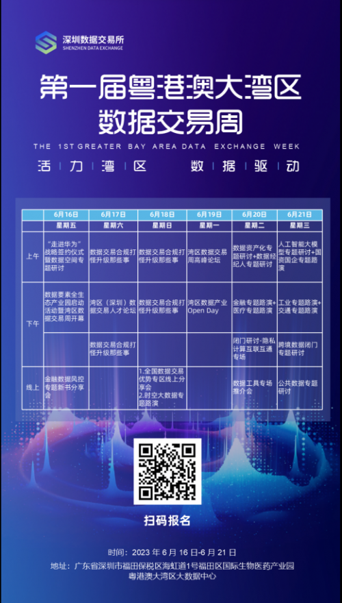 深圳數(shù)據(jù)交易所作為數(shù)據(jù)交易市場的先行者與推動者,積極聯(lián)通線上線下,共同打造灣區(qū)數(shù)據(jù)交易盛會,不斷探索數(shù)據(jù)交易發(fā)展的創(chuàng)新思路。為激發(fā)數(shù)據(jù)交易市場活力,在市發(fā)展改革委指導(dǎo)下,深圳數(shù)據(jù)交易所聯(lián)合深圳國家高技術(shù)產(chǎn)業(yè)創(chuàng)新中心將于2023年6月16日-21日舉辦“第一屆粵港澳大灣區(qū)數(shù)據(jù)交易周”系列活動,圍繞金融、醫(yī)療、工業(yè)、交通等行業(yè)舉辦近20場專題路演、產(chǎn)品宣講、交易撮合、企業(yè)參觀等活動。