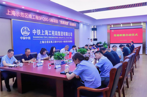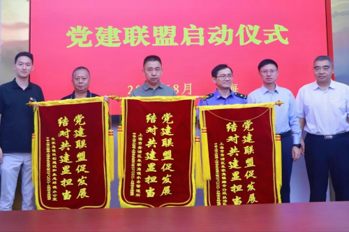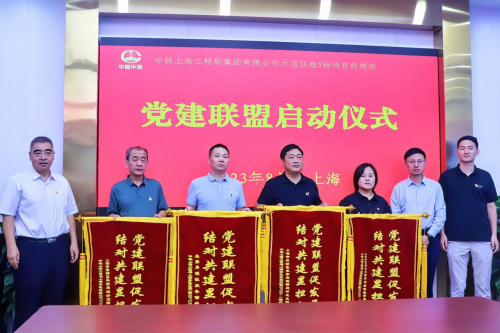 啟動(dòng)儀式現(xiàn)場(chǎng),青浦區(qū)朱家角鎮(zhèn)黨委委員王磊,中鐵上海工程局集團(tuán)有限公司城建分公司黨委副書記、工會(huì)主席張文續(xù),上海申鐵投資有限公司項(xiàng)目經(jīng)理何喬石現(xiàn)場(chǎng)為各聯(lián)建單位授予“黨建聯(lián)盟促發(fā)展,結(jié)對(duì)共建顯擔(dān)當(dāng)”錦旗,并共同見(jiàn)證上海示范區(qū)線5標(biāo)項(xiàng)目部與各單位締結(jié)《黨建聯(lián)建協(xié)議書》。據(jù)了解,聯(lián)盟成立后,各聯(lián)建單位將相互交流黨建工作經(jīng)驗(yàn),共同開(kāi)展黨建共建活動(dòng),通過(guò)推進(jìn)區(qū)域化黨建,盤活黨組織力量資源,實(shí)現(xiàn)黨建與生產(chǎn)深度融合,以高質(zhì)量黨建引領(lǐng)高質(zhì)量發(fā)展。