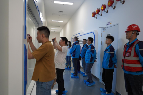 隨后,在項(xiàng)目團(tuán)隊(duì)的帶領(lǐng)下,媒體嘉賓們走進(jìn)施工一線,深入了解遂寧蜂巢能源項(xiàng)目施工建設(shè)歷程,感受寶冶“建精品工程、鑄長(zhǎng)青基業(yè)”的企業(yè)使命。在已完工的1#綜合樓,項(xiàng)目經(jīng)理講解了1#建筑功能及周邊海綿城市應(yīng)用情況,隨后經(jīng)過2#中試線,為大家介紹了廠房建筑特點(diǎn)及2#中試線工藝功能,在5#建筑電極及裝配車間的參觀通道內(nèi),記者們與項(xiàng)目管理團(tuán)隊(duì)探討交流了相關(guān)廠房建筑特點(diǎn)及工藝流程,最后經(jīng)4#化成車間出廠區(qū)。