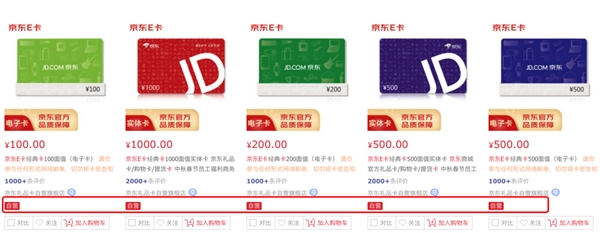 這里再叮囑一句,京東E卡有實體卡與電子卡之分,商品頁面會有相關標識,購買時務必認準,以免帶來不便。