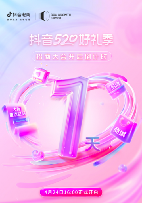 為給商家提前蓄勢520,擴寬商家經(jīng)營生意場,「抖音520好禮季」招商大會將于4月24日16點正式召開,屆時將為商家披露全域億級流量扶持權(quán)益,詳細解讀貨架與內(nèi)容場景參與方法,助推商家借助營銷節(jié)點,實現(xiàn)全域生意爆發(fā)。
