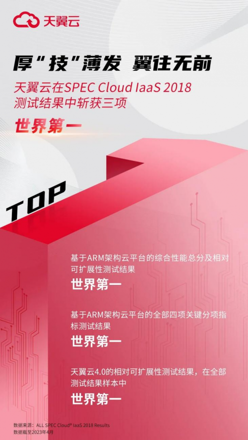 測(cè)試結(jié)果,天翼云平臺(tái)在綜合性能及平臺(tái)相對(duì)可擴(kuò)展性比拼中奪得世界第一。在9臺(tái)組規(guī)模測(cè)試、ARM指令集架構(gòu)測(cè)試場(chǎng)景中,天翼云平臺(tái)的測(cè)試結(jié)果一舉刷新世界紀(jì)錄;應(yīng)用實(shí)例復(fù)制數(shù)、相對(duì)可擴(kuò)展性和平均實(shí)例配置時(shí)間等指標(biāo)均達(dá)到全球領(lǐng)先水平,充分體現(xiàn)天翼云平臺(tái)優(yōu)秀的算力調(diào)度能力和大規(guī)模擴(kuò)展能力。