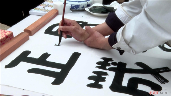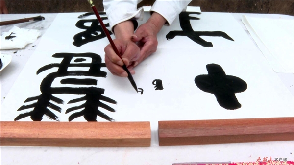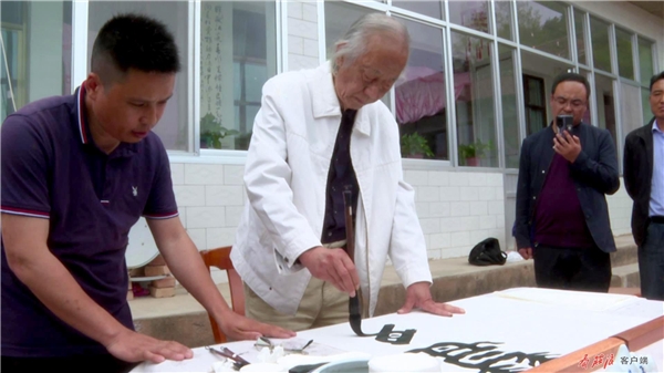 在農(nóng)家小院,閻正正在聚精會(huì)神地?fù)]毫潑墨,他在筆墨的運(yùn)用上別出心裁、匠心獨(dú)運(yùn),流暢的線條蒼勁有力,書法作品淋漓盡致地展現(xiàn)于尺幅之上。談起他創(chuàng)作的靈感,閻正說(shuō),“莊浪歷史悠久、文化底蘊(yùn)深厚、森林植被覆蓋率高,儼然一幅天然山水畫。莊浪縣云崖寺自然風(fēng)光秀麗,石窟藝術(shù)精美,有遠(yuǎn)山、有水庫(kù)、有寺廟,它完全具備中國(guó)畫的每一個(gè)條件?!?/p>