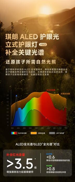 為此,琪朗以“為人類創(chuàng)造舒適的健康光環(huán)境”為使命,致力打造中國(guó)千萬(wàn)兒童房專用護(hù)眼光環(huán)境。2022年,琪朗聯(lián)合中山大學(xué)中山眼科中心共同研發(fā)全新專利技術(shù)ALED護(hù)眼光。新一代ALED護(hù)眼光其原理是打造與太陽(yáng)光的可見(jiàn)光譜接近的照明光譜,通過(guò)降低有害藍(lán)光峰值,補(bǔ)全孩子眼睛發(fā)育關(guān)鍵的紅光波段,緩解孩子近距離用眼疲勞,延緩近視發(fā)生發(fā)展。自從愛(ài)迪生發(fā)明光源以來(lái),經(jīng)歷了白熾燈、鹵素?zé)?、熒光燈、LED燈后,ALED護(hù)眼光是人類史上最近接太陽(yáng)光譜的光源,其光源更護(hù)眼,更舒適,更健康。