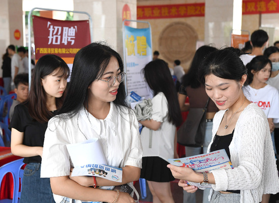 7月2日,廣西國際商務(wù)職業(yè)技術(shù)學(xué)院學(xué)生在校園雙選會上求職。新華社記者 周華 攝