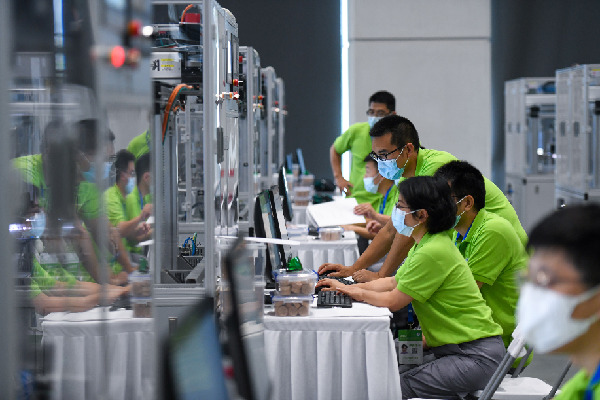 在深圳舉行的全國(guó)工業(yè)和信息化技術(shù)技能大賽決賽上,選手在工業(yè)大數(shù)據(jù)算法項(xiàng)目比賽中操作。