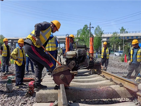 上午8時(shí)許,隨著駐站聯(lián)絡(luò)員精準(zhǔn)的天窗施工報(bào)點(diǎn)后,上、下行線共200余名作業(yè)人員迅速上道,開(kāi)始鋸軌、清除既有線枕木頭及枕木盒道碴、整平既有道床、撥移既有線路與預(yù)鋪線路連接等工作,并在線路撥移到位后,迅速進(jìn)行鋼軌焊接、上碴整道、大機(jī)搗固、精調(diào)等作業(yè)。隨后,工務(wù)檢查軌道靜態(tài)幾何尺寸,并進(jìn)行電氣信號(hào)聯(lián)鎖試驗(yàn),于中午12:30分左右完成施工,恢復(fù)線路。為確保營(yíng)業(yè)線施工安全質(zhì)量進(jìn)度全面受控,項(xiàng)目部超前謀劃,統(tǒng)籌組織,突出關(guān)鍵環(huán)節(jié)和重點(diǎn)工序,從資源配置、方案優(yōu)化、安全質(zhì)量等方面入手,明確責(zé)任分工,優(yōu)化組織設(shè)計(jì),動(dòng)態(tài)跟蹤調(diào)整,并嚴(yán)格按照鐵路部門有關(guān)文件要求設(shè)置封鎖及慢行防護(hù),最終圓滿完成了撥接施工任務(wù)。
