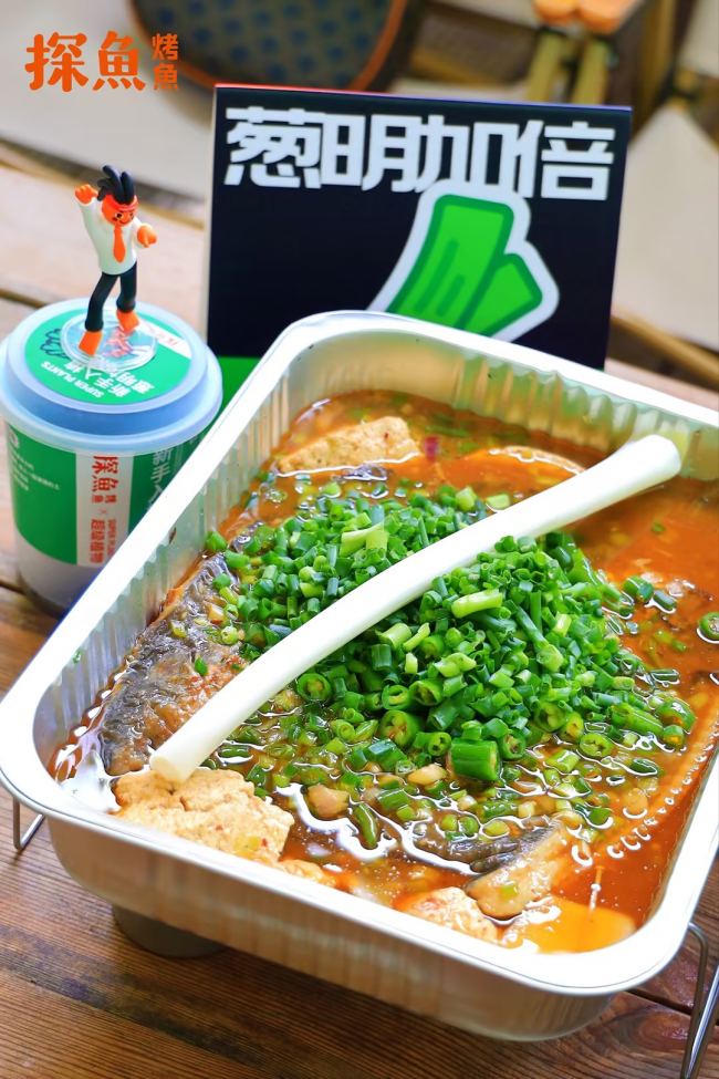 在產(chǎn)品研發(fā)上,探魚也充分考慮了顧客在感官、味覺、互動(dòng)等多方面的場(chǎng)景體驗(yàn),最新推出的“鮮青椒蔥蔥烤魚”就充分體現(xiàn)了這一點(diǎn)。鮮青椒蔥蔥烤魚在創(chuàng)新理念上,是探魚招牌口味“鮮青椒爽麻烤魚”口味的味型升級(jí),在藤椒口味的基礎(chǔ)上增加時(shí)令性的蔥香風(fēng)味,一經(jīng)推出,就頗受大眾喜愛。據(jù)悉,新品上市7天,已經(jīng)比去年同期上新的烤魚銷量上漲105%。在產(chǎn)品呈現(xiàn)上,新品上餐時(shí)配上一整棵鮮甜大蔥,然后由服務(wù)人員現(xiàn)場(chǎng)進(jìn)行“剪蔥儀式”,將蔥段下入鍋內(nèi),提味增香,同時(shí)為消費(fèi)者營造一種新奇特的體驗(yàn)感。除此之外,探魚借勢(shì)本次上新,與最近大熱的植物品牌“超級(jí)植物公司”聯(lián)名推出可以種出小蔥的“蔥明種子卡”,不僅深化蔥的產(chǎn)品主題,還收獲了目標(biāo)客群“打工人”的情感共鳴。