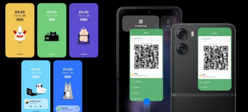 OPPO Find N2 Flip外屏寵物則是卡通版,也很可愛,應(yīng)用雙屏同開的功能很出彩,一邊用內(nèi)屏回消息,一邊展示外屏二維碼進(jìn)行掃碼,太方便了。