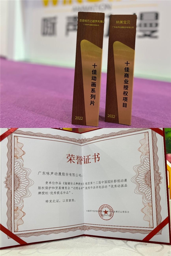 ? ? 2023年7月20日-7月23日,第十三屆中國國際影視動漫版權(quán)保護(hù)和貿(mào)易博覽會(簡稱“漫博會”)在東莞舉辦,詠聲動漫以優(yōu)異表現(xiàn)榮獲三項(xiàng)大獎。其中,豬豬俠X納美寶貝聯(lián)名系列榮獲“中國IP Bank獎——十佳商業(yè)授權(quán)項(xiàng)目”,《百變校巴之超學(xué)先鋒1》榮獲“中國IP Bank獎——十佳動畫系列片”。詠聲動漫《豬豬俠品牌授權(quán)》則斬獲“動感金羊”優(yōu)秀動畫品牌授權(quán)-優(yōu)秀提名作品。