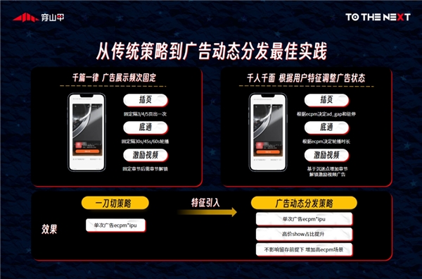 ▎閱讀行業(yè):?為避免過往千篇一律的廣告展示影響用戶體驗(yàn),穿山甲基于GroMore獨(dú)特的用戶價(jià)值分組能力,借助用戶所看書籍類型、閱讀速度、在線時(shí)長(zhǎng)、累計(jì)觀看廣告數(shù)量等不同參數(shù),為開發(fā)者建立了一套用戶分層策略。通過“廣告動(dòng)態(tài)分發(fā)”,根據(jù)用戶特征及時(shí)調(diào)整廣告狀態(tài),在不影響用戶留存的情況下進(jìn)一步提升廣告arpu,實(shí)現(xiàn)LTV最大化。