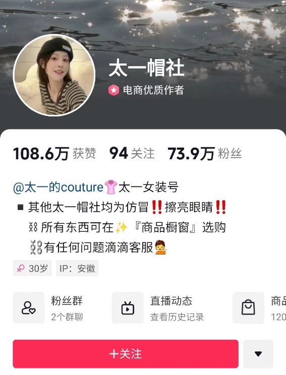實際上,嘉棋很會選主播,很多關注太一帽社的粉絲都知道,他們家的主播顏值都非常高,不同帽子戴到不同主播頭上后,能展現(xiàn)出各個類型的氣質。“我們選主播要看這個人和品的匹配度,而不是讓一個主播試戴所有帽子”。嘉棋還表示,由于各個合伙人都很賣力,他們今年想做到1個億的交易額。