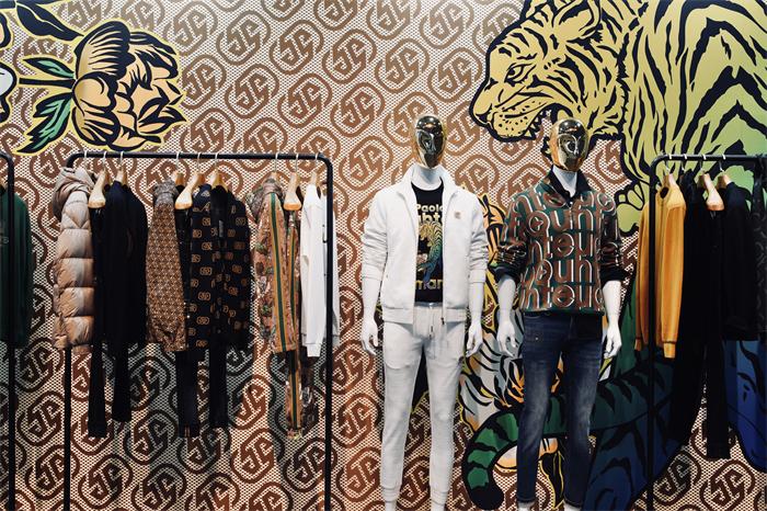 除了注重客戶體驗(yàn),現(xiàn)場服裝陳列搭配及展館搭建也很有講究。展廳內(nèi),第三代OT原創(chuàng)圖案與前Gucci設(shè)計(jì)師Paola Smania的“虎嗅薔薇”聯(lián)名印花,交相輝映,彰顯著歐度品牌的風(fēng)格與調(diào)性。墻面上老花、猛虎、花卉幾大元素渾然天成,帶來強(qiáng)烈的視覺藝術(shù)美感。左側(cè)墻面還展出了《歐度與清華大學(xué)藝術(shù)與科學(xué)研究中心色彩研究所》有關(guān)中國男裝色彩研究的合作報(bào)告。