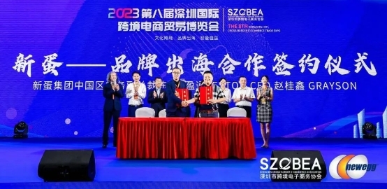 本次大會(huì)期間,新蛋集團(tuán)分別與VANTRUE聯(lián)合創(chuàng)始人陳劍 George,盈通Yeston CEO趙桂鑫Grayson,公牛集團(tuán)跨境電商出口業(yè)務(wù)總監(jiān)易恬3位企業(yè)代表簽訂業(yè)務(wù)合作協(xié)議,共謀未來(lái)深圳跨境電商出口新發(fā)展藍(lán)圖,搭建中國(guó)產(chǎn)業(yè)互聯(lián)互通的橋梁。