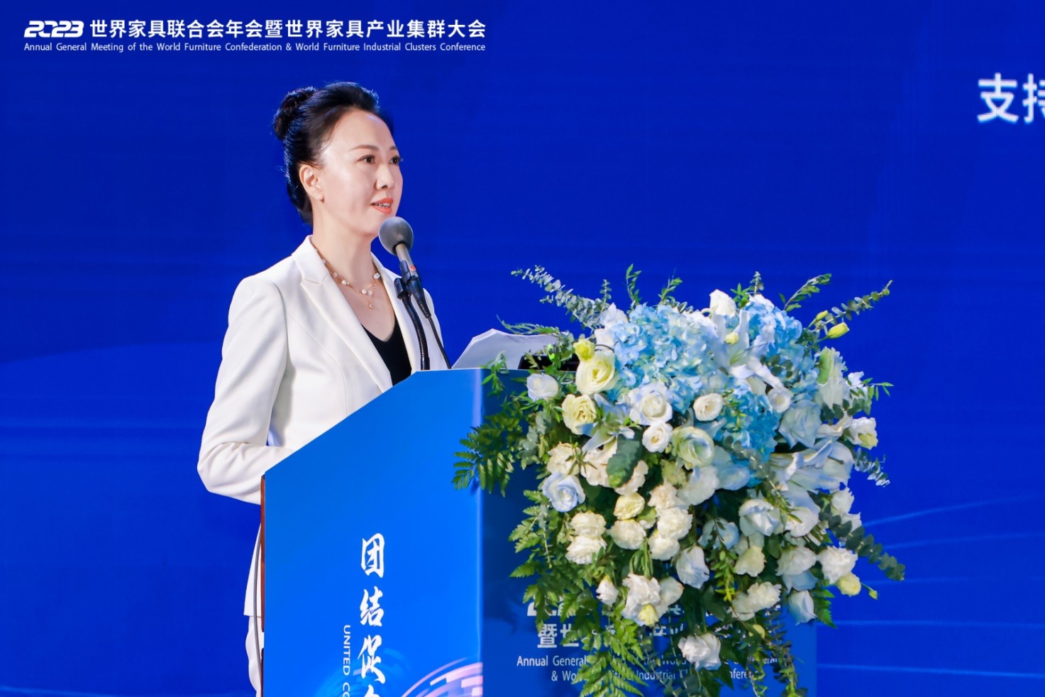 世界家具聯(lián)合會(huì)秘書(shū)長(zhǎng)、亞洲家具聯(lián)合會(huì)副會(huì)長(zhǎng)兼秘書(shū)長(zhǎng)、中國(guó)家具協(xié)會(huì)副理事長(zhǎng)兼秘書(shū)長(zhǎng)屠祺女士向全體與會(huì)嘉賓作《全球家具行業(yè)發(fā)展報(bào)告》。