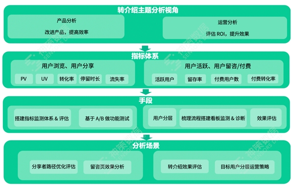 轉(zhuǎn)介紹場景下的重點(diǎn)有四個(gè):老用戶池、激勵(lì)體系、分享路徑和內(nèi)容、新用戶轉(zhuǎn)化。如下圖所示: