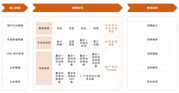 4、消費者全生命周期運營的基礎(chǔ)是構(gòu)建動靜結(jié)合的全域會員用戶標(biāo)簽體系,顆粒度越細,越容易產(chǎn)生更好的落地效果。