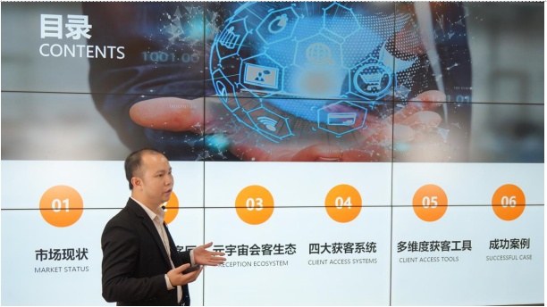 關(guān)于云展動(dòng)力及鴻威元宇宙會(huì)客廳,鴻威集團(tuán)云展動(dòng)力負(fù)責(zé)人陳良玉介紹道,云展動(dòng)力精準(zhǔn)獲客平臺(tái)歷經(jīng)多年打磨,現(xiàn)已集合了數(shù)字孿生云展系統(tǒng)、大數(shù)據(jù)獲客系統(tǒng)、精準(zhǔn)邀約系統(tǒng)、客戶管理系統(tǒng),形成了有效的智能獲客生態(tài)。針對(duì)“幫助企業(yè)獲客”的核心問(wèn)題,云展動(dòng)力重磅推出了元宇宙會(huì)客廳,能夠完美復(fù)刻企業(yè)實(shí)景,讓精準(zhǔn)客戶不受時(shí)空限制,隨時(shí)隨地進(jìn)入云展廳參觀,完成逛展會(huì)、看產(chǎn)品、游產(chǎn)線等實(shí)時(shí)互動(dòng)操作,助力參展企業(yè)實(shí)現(xiàn)高效獲客,為國(guó)際采購(gòu)商尋求優(yōu)質(zhì)供應(yīng)服務(wù)商創(chuàng)造條件。