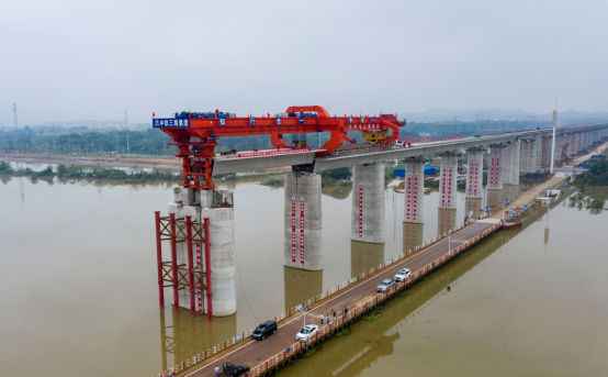 據(jù)中鐵三局項(xiàng)目負(fù)責(zé)人紀(jì)常永介紹,蘄河特大橋196米連續(xù)梁為全線重難點(diǎn)工程之一,大跨度連續(xù)梁拱縱移段總體水平長度為185.5米,是國內(nèi)縱移段水平長度之最。面對工序復(fù)雜,質(zhì)量要求高,施工安全風(fēng)險(xiǎn)大等困難,項(xiàng)目部成立了安全質(zhì)量工期攻關(guān)小組,實(shí)行24小時(shí)作業(yè),采用異位拼裝整體縱移施工方案,蘄河特大橋連續(xù)梁以八天一節(jié)段的施工進(jìn)度快速推進(jìn),保證了節(jié)點(diǎn)工期按期實(shí)現(xiàn)。