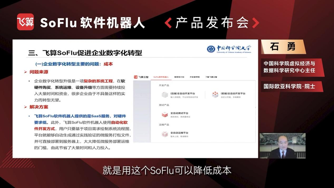 “全自動開發(fā)無疑是大勢所趨。軟件行業(yè)高度依賴人力,這導(dǎo)致軟件開發(fā)效率低、質(zhì)量差,只有解決以上問題,企業(yè)才能順利推進(jìn)數(shù)字化轉(zhuǎn)型。”飛算云智總裁、SoFlu軟件機(jī)器人的總設(shè)計師陳定瑋在發(fā)布會上表示。