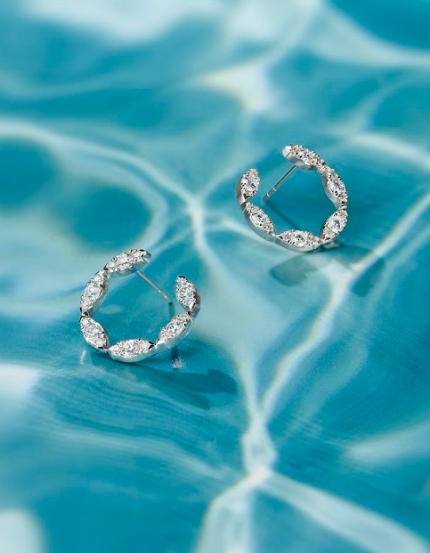 由欖尖形及梨形兩種元素構(gòu)造而成的鉆石耳環(huán),形態(tài)優(yōu)雅,
