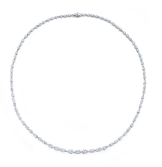 以梨形元素連接而成的項(xiàng)鏈,中央部分展現(xiàn)柔和的曲線,綺麗動(dòng)人。
