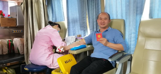 2020年疫情爆發(fā)以來,來賓市血站中心血液告急,得知消息后王洪主動召集員工參加無償獻血活動,自身血液各項指標經(jīng)檢測合格后,年近50歲的他以身作則,挽起袖子第一個獻血。連續(xù)三年來,他個人共計捐獻了1200ML鮮血,員工52人次參與獻血,獻血量17500ML,以實實在在的行動為抗擊疫情傳遞愛的力量。