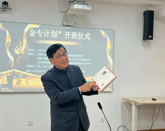 上海段和段律師事務(wù)所知識(shí)產(chǎn)權(quán)中心主任郭國(guó)中為“金專計(jì)劃”開(kāi)班儀式致辭時(shí)表示,非常榮幸參與“金專計(jì)劃”,未來(lái)將致力于培養(yǎng)更多專利代理實(shí)務(wù)人才。
