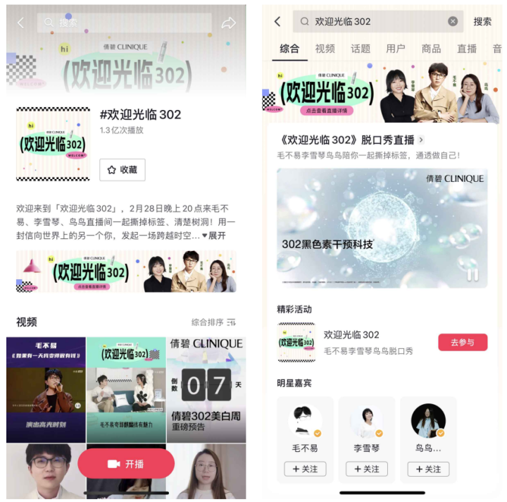 截至目前,活動收獲2億+曝光量、節(jié)目播放總量突破7800萬次,抖音話題#歡迎光臨302 收獲播放量1.3億+,引起廣泛熱議與共鳴。