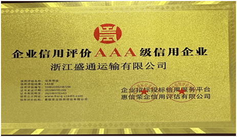 浙江盛通運(yùn)輸有限公司榮獲國家AA級物流企業(yè)資質(zhì)