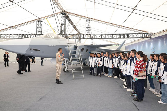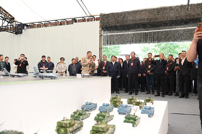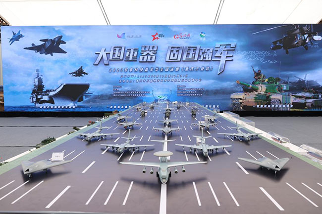 輝煌歷程展區(qū)以時(shí)間主線,將我國軍事科技領(lǐng)域的重要任務(wù)和重大事件,形成時(shí)空長廊,再現(xiàn)“大閱兵”的恢宏場景;陸戰(zhàn)驕子展區(qū)則是展示陸軍現(xiàn)代化建設(shè)成果的重要展區(qū),各型1:1比例的裝備模型,讓人們深刻體會(huì)到中國陸軍裝備的壯大;劍指深藍(lán)展區(qū)聚焦海軍強(qiáng)大艦艇裝備,各型號(hào)軍艦和先進(jìn)武器系統(tǒng)的展示讓人們感受到海軍走向深藍(lán)的勇氣;藍(lán)天利刃展區(qū)則展示空軍先進(jìn)武器和戰(zhàn)機(jī),各型號(hào)戰(zhàn)機(jī)和導(dǎo)彈的專業(yè)介紹讓人們體驗(yàn)到空軍的迅猛發(fā)展;鳴嘯長空展區(qū)則是以“兩彈一星”為主力展品,并結(jié)合導(dǎo)彈發(fā)射車、空天一體打擊體系等內(nèi)容,展示我國戰(zhàn)略打擊力量;深空探秘展區(qū)則是展示我國太空事業(yè)發(fā)展成果的重要展區(qū),各類衛(wèi)星、火箭、空間站的展示,讓人們感受到中國太空事業(yè)的高速發(fā)展。