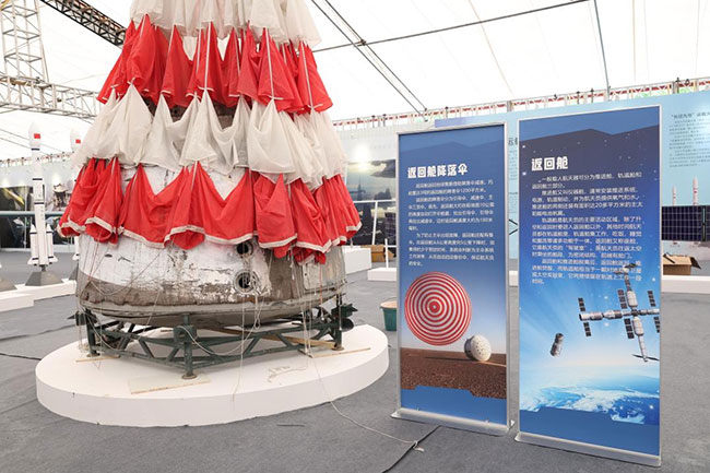 巡展現(xiàn)場的返回艙實(shí)物及返回艙降落傘
