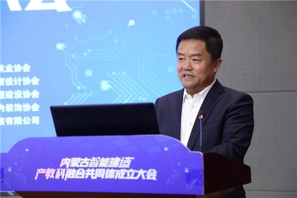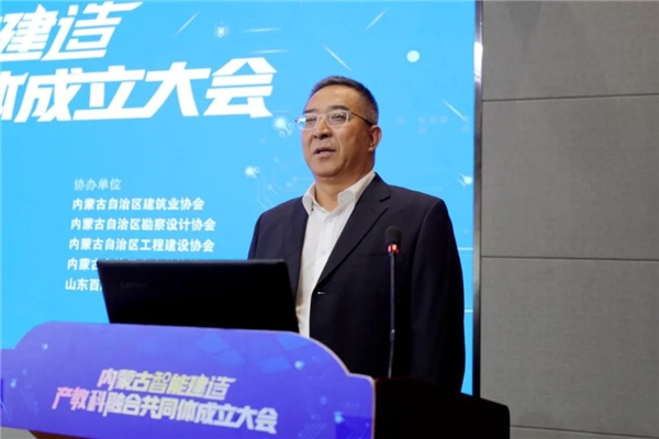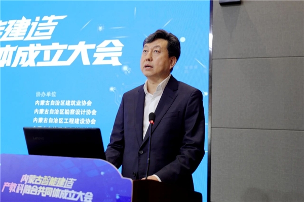 王剛講話,他指出,內(nèi)蒙古智能建造產(chǎn)教科融合共同體的成立,標(biāo)志著內(nèi)蒙古自治區(qū)智能化建設(shè)領(lǐng)域的職業(yè)教育邁入了一個新的發(fā)展階段,對加快內(nèi)蒙古自治區(qū)建筑行業(yè)轉(zhuǎn)型升級,推動內(nèi)蒙古自治區(qū)經(jīng)濟(jì)發(fā)展具有重要意義,希望共同體以及各成員單位把握綠色建材、裝配式建筑這一大發(fā)展方向,注重智能化與各種綠色低碳材料、工業(yè)化部品部件、清潔能源和超低能耗建筑的結(jié)合,為企業(yè)和社會培養(yǎng)、輸送更多高素質(zhì)技術(shù)技能人才,在校企合作中幫助企業(yè)、行業(yè)孵化更加成熟的新技術(shù)體系,共同提升內(nèi)蒙古智能建造產(chǎn)教科融合共同體對建設(shè)現(xiàn)代產(chǎn)業(yè)體系的支撐作用。