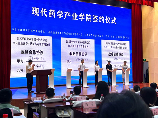 會上,全億健康淮安分部與江蘇護理職業(yè)學院中醫(yī)藥學院簽署戰(zhàn)略合作協(xié)議,攜手共建現(xiàn)代藥學產(chǎn)業(yè)學院。