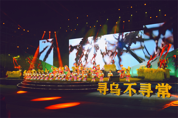尋烏還是具有光榮革命傳統(tǒng)的紅色故土、革命老區(qū)。節(jié)目現(xiàn)場(chǎng),情景演繹《大美尋烏》以祖孫對(duì)話、導(dǎo)游講解、視頻展示等形式,帶觀眾身臨其境地體驗(yàn)了壯美秀麗的東江源、古色古香的大夫第和彰顯紅色精神的“一館七址”。具有光榮革命傳統(tǒng)的尋烏人民,銘記歷史,感恩奮進(jìn),凝聚智慧,勇于擔(dān)當(dāng),砥礪前行,奮力譜寫尋烏高質(zhì)量發(fā)展新篇章,描繪了一幅尋烏社會(huì)主義現(xiàn)代化建設(shè)新畫卷!歡歌笑語(yǔ)唱盛世,一首《尋烏不尋?!犯浅鰧跞嗣袂趧趭^進(jìn)、追尋美好生活的幸福愿景!
