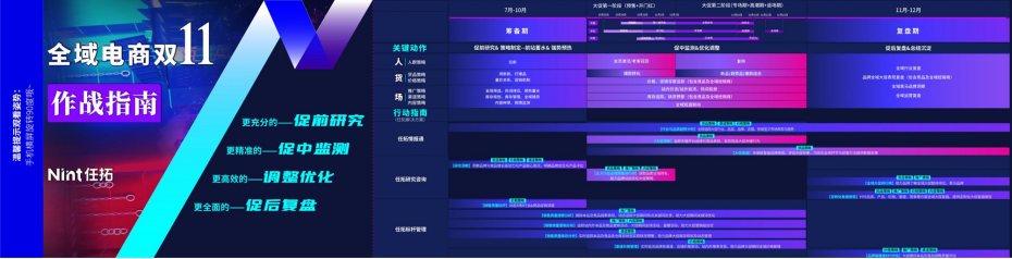 Nint任拓首次發(fā)布《雙11全域電商增長作戰(zhàn)圖》,從大促籌備期、大促期到復(fù)盤期三大階段出發(fā),梳理了品牌商家核心運(yùn)營策略,為品牌商家提供明確的行動指南。