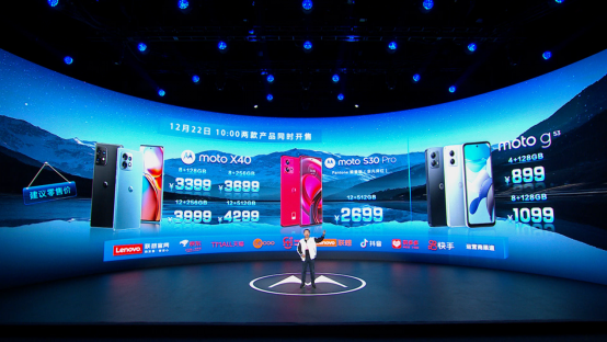 2022年12月15日19時(shí)30分,聯(lián)想moto召開了以“心無畏,赴山?!睘橹黝}的新品發(fā)布會(huì),正式發(fā)布了moto X40、moto G53和moto S30 Pro潘通限量版(非凡洋紅)三款新品。其中,“手機(jī)中的SUV”moto X40,首發(fā)價(jià)3399元起;“千元5G全擊手”moto G53,首發(fā)價(jià)899元起;而moto S30 Pro潘通限量版(非凡洋紅),首發(fā)價(jià)則是2699元起。