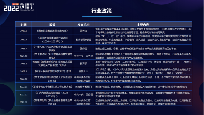 二十大報告里面對教育領域的發(fā)展也提出了明確的目標,就是要建成教育強國、科技強國、人才強國、文化強國等,尤其在教育、科技、人才方面,這都是跟我們行業(yè)息息相關的,也是我們行業(yè)機構在業(yè)務布局和企業(yè)經營方面需要重點關注的方向。