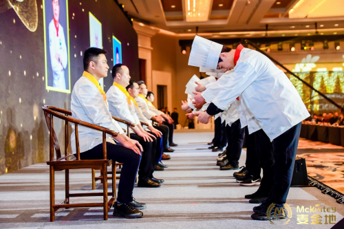 麥金地是一家先建立文化體系再建立管理體系的公司,以尊師重道、廚藝傳承傳承為宗旨創(chuàng)立“廚藝促進(jìn)會(huì)”,以“仁義禮智信”儒家文化為底蘊(yùn)組建【麥金地精忠俱樂部】管理團(tuán)隊(duì),是麥金地集團(tuán)一貫堅(jiān)持的管理措施。會(huì)議第一章,舉行了廚藝促進(jìn)會(huì)拜師儀式和精忠俱樂部入會(huì)儀式。