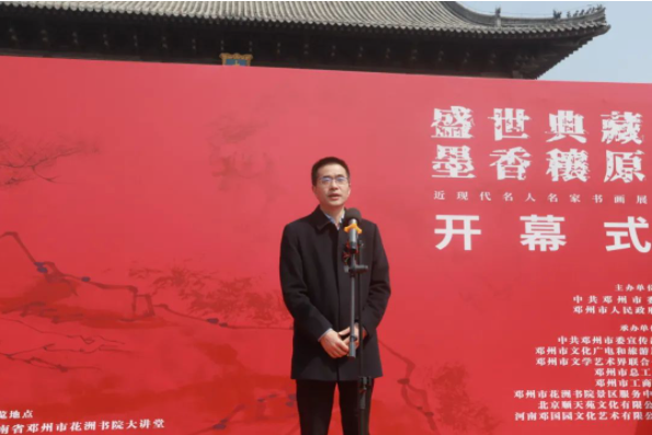 為全面學(xué)習(xí)貫徹黨的二十大精神,弘揚(yáng)傳承中華優(yōu)秀傳統(tǒng)文化,進(jìn)一步繁榮鄧州文藝事業(yè),以優(yōu)秀的作品豐富群眾文化生活,3月30日,“盛世典藏墨香穰原”中國(guó)近現(xiàn)代名人名家書(shū)畫(huà)展在河南省鄧州市花洲書(shū)院開(kāi)幕。來(lái)自北京藝術(shù)界代表,南陽(yáng)市文聯(lián)、美協(xié)、書(shū)協(xié)代表,鄧州市相關(guān)文化部門負(fù)責(zé)人及鄧州市廣大書(shū)畫(huà)愛(ài)好者參加了開(kāi)幕式。